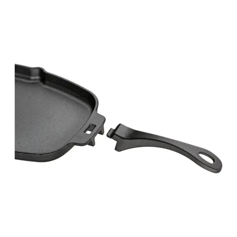 La solución elegante y sostenible para tu próxima barbacoa. En la parrilla/bandeja para servir con tabla de madera de KÜCHENPROFI, puedes preparar con delicadeza platos pequeños y guarniciones como mariscos, queso de cabra con miel y romero o verduras crujientes. El adobo se mantiene en la comida y no gotea sobre la llama. Las sartenes, hechas de hierro fundido que retiene el calor, mantienen la comida caliente durante mucho tiempo. Su construcción robusta es una alternativa ecológica a las bandejas de aluminio desechables. Si el tiempo no acompaña, las parrillas/bandejas para servir se pueden usar en la estufa. Son aptas para todo tipo de cocinas y, por supuesto, también se pueden usar en el horno. Llenar una parrilla con calabacín, pimientos, tomates y ajo, desmenuzar queso feta por encima y servir con una baguette fresca creará un ambiente mediterráneo incluso sin sol. Puedes transportar la parrilla gracias a su resistente asa, y la tabla de madera de pino es ideal para servir con estilo. Un hueco en la tabla sujeta la parrilla de forma segura.