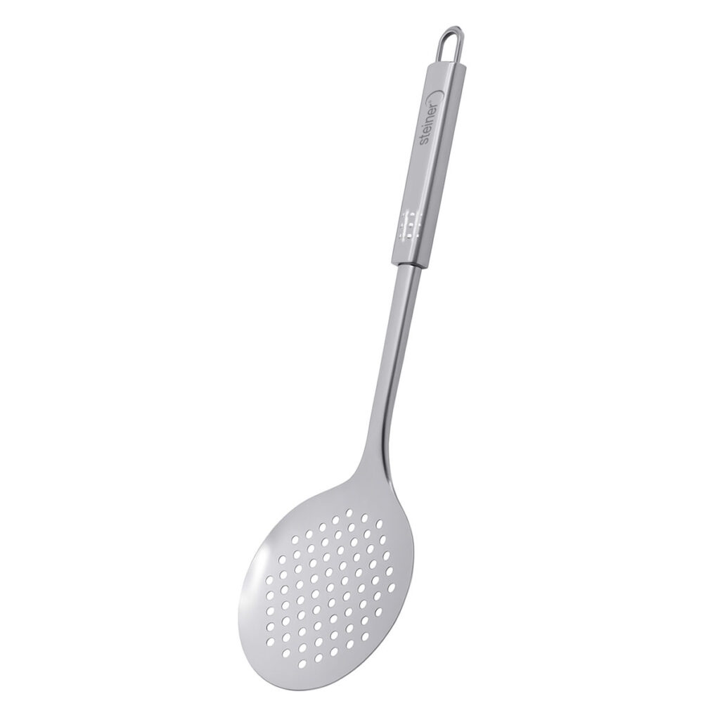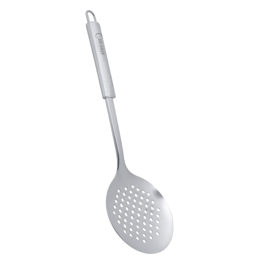 Haz que cada preparación sea más práctica y eficiente con la Espumadera Steiner ST2024, diseñada para facilitar el manejo de alimentos mientras escurres líquidos o grasa con total comodidad.