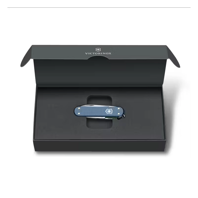 En la cima de la creatividad, la Classic SD Alox de edición limitada 2026 destaca como pieza de colección por su estética clara y serena. Este tono exclusivo evoca la fuerza tranquila y la resistencia permanente de los glaciares alpinos, e irradia una frescura vibrante única. Las cachas de aluminio anodizado, meticulosamente diseñadas y estampadas, ofrecen una durabilidad óptima. Esta navaja, con el año de fabricación grabado en el dorso de la hoja para darle un toque conmemorativo adicional, y presentada en una elegante caja de regalo negra, es una pieza para atesorar por siempre.