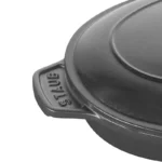 Esta fuente ovalada para gratinar con tapa está hecha de hierro fundido resistente y es ideal para cocinar deliciosos platos de forma suave y saludable.La elegante forma negra es versátil y ha conquistado incluso a los mejores chefs. La fuente para hornear que tiene un pomo dorado mide 28,7 cm de largo incluyendo las asas, 9,5 cm de alto, 17,8 cm de ancho y una capacidad de 1 litro.La clásica forma ovalada garantiza un almacenamiento que ahorra espacio, ya que todas las cacerolas STAUB de diferentes tamaños se pueden apilar. En este plato, apto para todo tipo de fuegos, los platos se pueden primero dorar y luego dorar en el horno.El robusto hierro fundido almacena el calor y lo libera de manera uniforme. Utilice esta elegante cacerola de hierro fundido de la gama de utensilios de cocina STAUB y, ya sea cocinero principiante o profesional, podrá crear sofisticados platos gratinados e impresionar a sus invitados con sus habilidades culinarias.