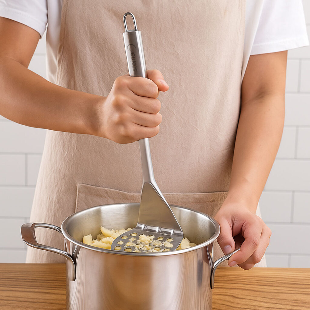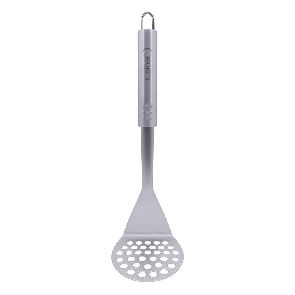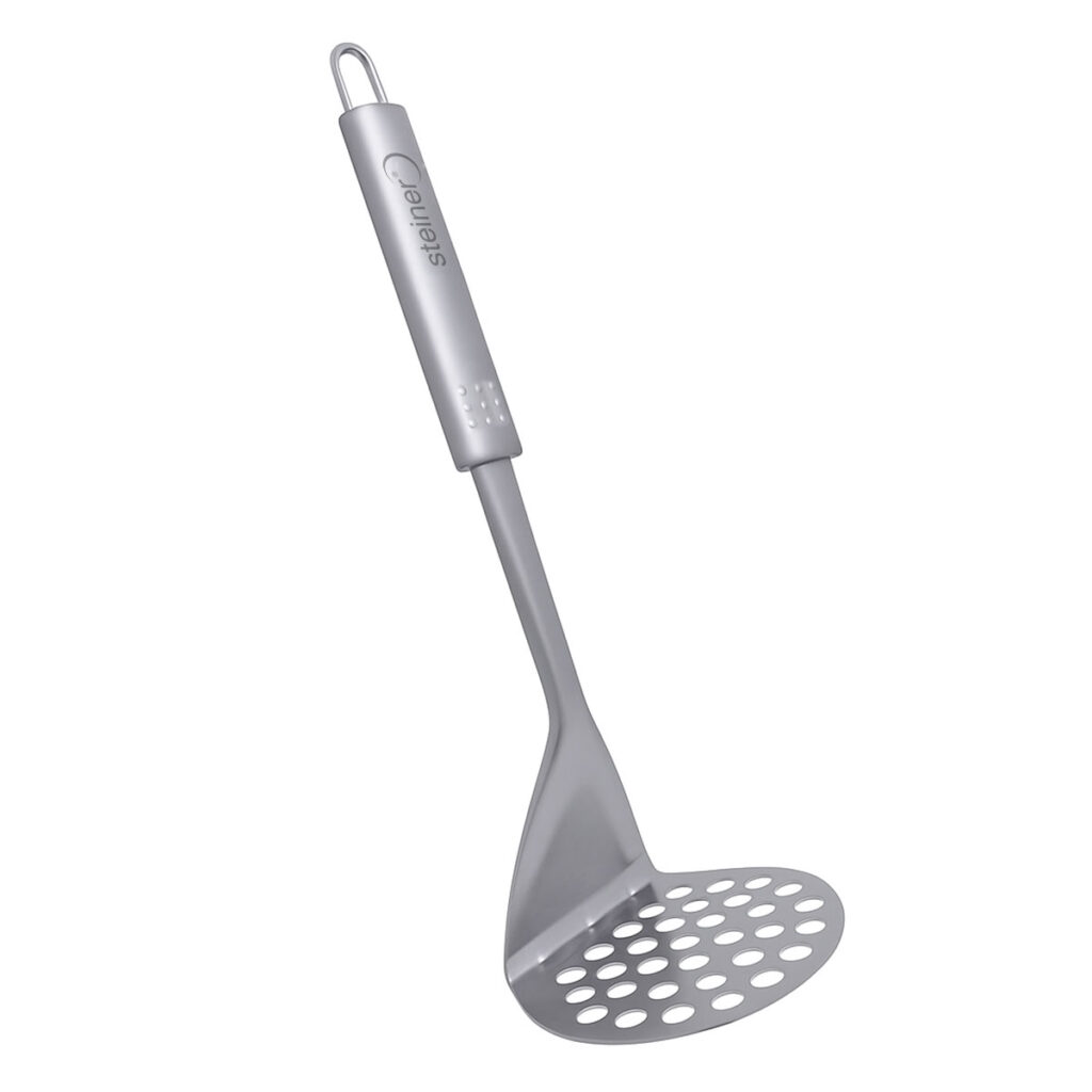Prepara tus platillos con mayor facilidad y precisión con este prensador Steiner ST2022, diseñado para brindar eficiencia y durabilidad en cada uso. Su base perforada permite triturar papas y otros alimentos de forma uniforme, logrando texturas suaves y consistentes sin esfuerzo.