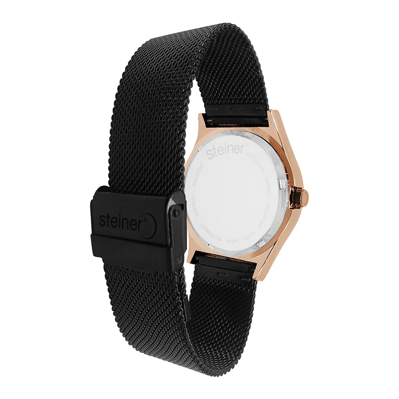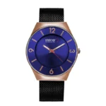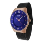 La correa tipo malla milanesa en color negro no solo eleva su apariencia elegante, sino que también brinda comodidad y un ajuste seguro en la muñeca. Este reloj es ideal para el hombre que busca un accesorio refinado, funcional y con una presencia discreta pero impactante.