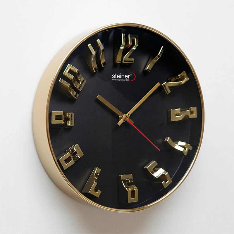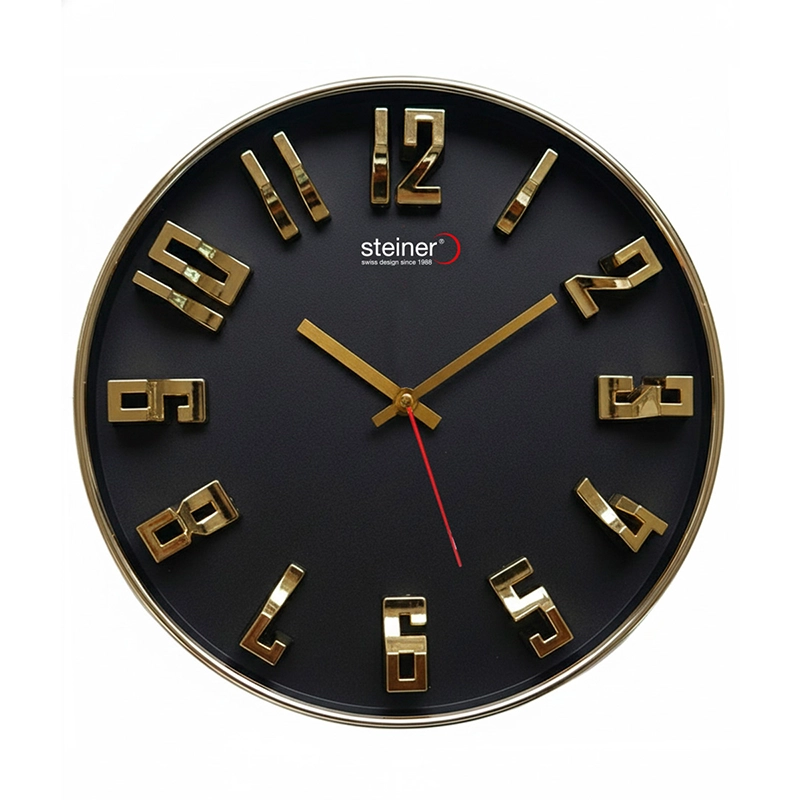 Reloj de Pared Análogo, 30 cm – Negro/Dorado