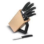 Las cocinas perfectas saben que el minimalismo natural es una estética que no pasa de moda. Presentamos nuestro soporte para cuchillos Swiss Classic, 8 piezas, una incorporación sofisticada para cualquier barra de cocina. De tamaño compacto y naturaleza creativa, le brinda todo lo que puede necesitar para cortar y estará siempre al alcance de la mano. Con ocho hojas de alta precisión, ayuda a todos los cocineros a mejorar sus capacidades con su variada selección de cuchillos filosos para cortar, cortar en dados, pelar y trinchar.