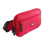 Cangurera con 4 compartimientos con cierre y correa ajustable para mayor comodidad, compartimiento interior con malla y cierre, recomendable para viajar o realizar cualquier actividad al aire libre, material 100% nylon, color rojo.